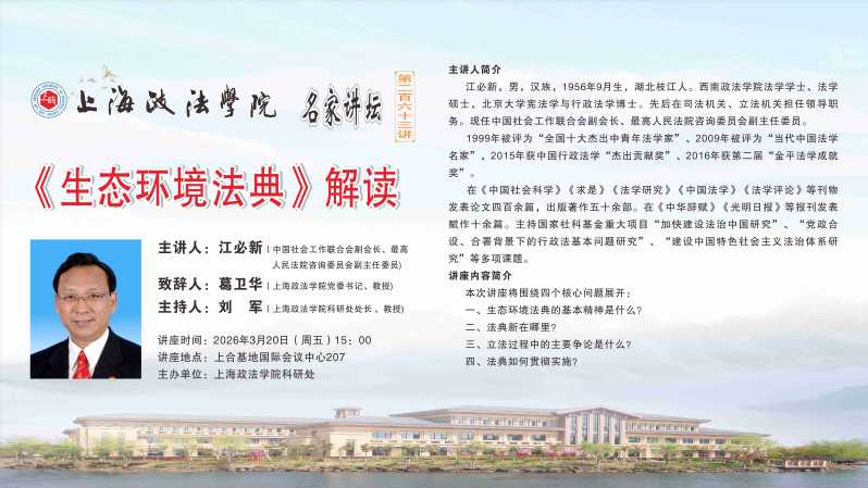 【名家讲坛第263讲】中国社会工作联合会副会长、最高人民法院咨询委员会副主任委员江必新:《生态环境法典》解读