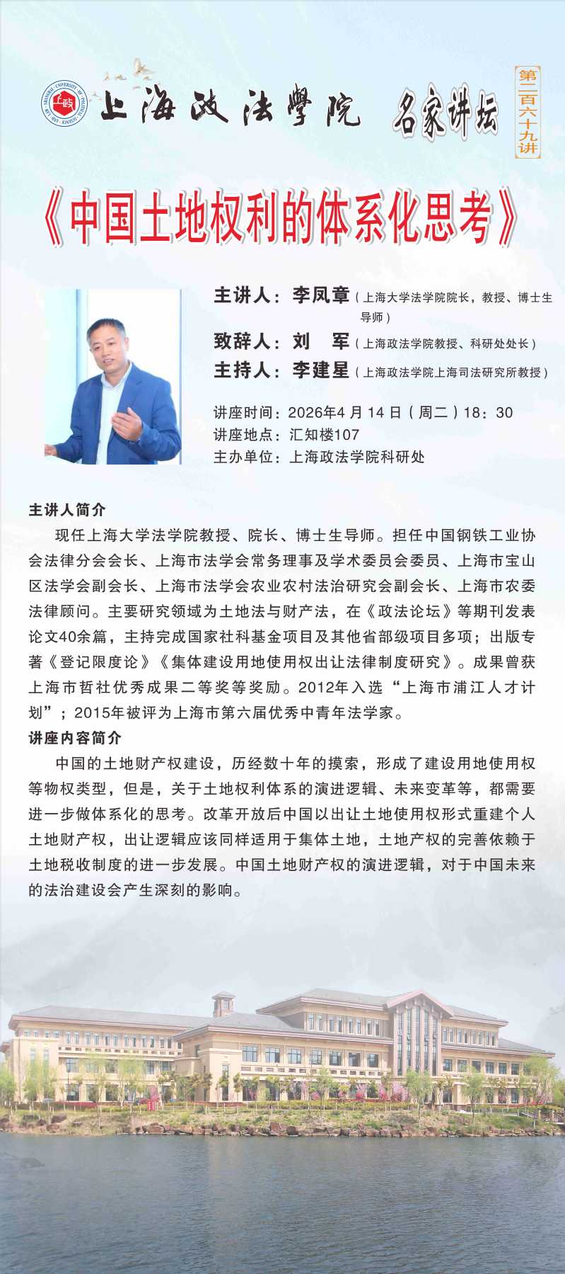 【名家讲坛第269讲】上海大学法学院院长、教授李凤章:中国土地权利的体系化思考