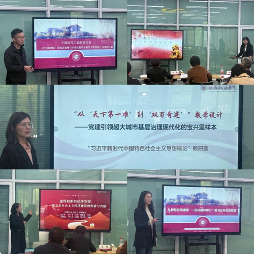 发展历程;中国化马克思主义教研室聚焦中华人民共和国成立初期经济困境,系统梳理陈云同志社会主义经济建设方面的理论贡献,实现史实、理论与价值引领的深度融合;思想政治教育教研室以桃浦镇“一站式解纷中心”为例,将本土实践、党史国史、理论阐释与价值引领有机融合