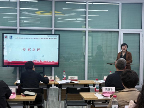在案例教学展示环节,五位教师立足各门思政课的特色进行了精彩呈现。习近平新时代中国特色社会主义思想概论教研室以宝兴里旧改实践为载体,展示超大城市基层治理的党建引领样本;马克思主义原理教研室聚焦中共一大至四大党内法规演进,总结党的纪律建设的历史启示;中国近代史教研室从江南造船厂解析民族工业百
