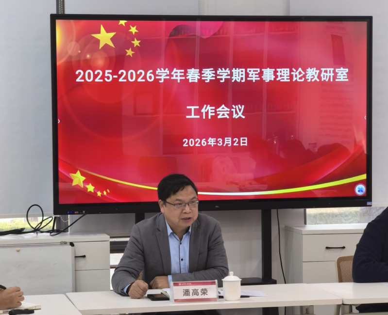 为全面提升我校军事理论课程教学质量,强化国防教育师资队伍建设,规范课程教学全过程管理,3月2日中午,武装保卫部(处)召开2025-2026学年春季学期军事理论教学工作会议。军事理论教研室全体教师参加会议,会议由教研室副主任蒋存耀主持。