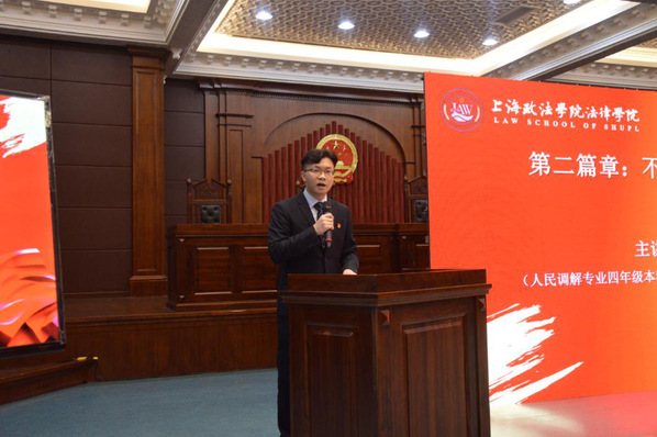 12月29日下午,法律学院党总支在B4模拟法庭举办了以“坚守初心使命 赓续法治精神”为主题的党课,这是学校第一季“伟大工程”示范党课系列之一。学校职能部门领导、老师,学院师生党员以及其他兄弟学院的领导、党支部书记、组织员代表前来观摩本次示范党课,法律学院学生党员现场聆听党课。党课由法律学院辅导员买雨佳担任串讲人。