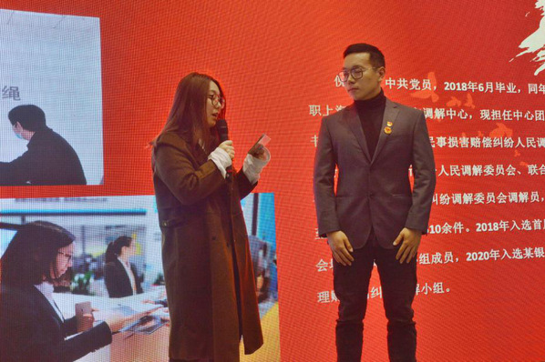 在以“心有所信,方能行远——与国家需要同在”为主题的第三篇章,辅导员李攀对目前就职于浦东新区东方调解中心的两位校友嘉宾倪佳佚、杨红进行了采访。两位人民调解专业的校友分享了自己的大学生活和工作经历,鼓励大家面向未来,走好新时代的长征路,坚定理想信念,矢志拼搏奋斗,做国家需要的人才。