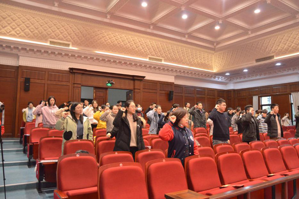 最后,在文立月的带领下,全体师生党员一起重温入党誓词,坚定理想信念。铿锵恢宏的誓词,强烈震撼着在场的每一位党员,一字一句,神圣而豪迈,铮铮誓言,体现了党员同志们对中国共产党的无限忠诚,坚定了入党使命,奋斗初心。