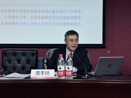 同时,在对公共应急理念和应急法治原则进行检讨,以及对总书记和党中央关于应急法治论述的深入阐释基础上,莫于川教授重点就《中华人民共和国突发事件应对法》大修工程的创新亮点进行了解读。修订后的《中华人民共和国突发事件应对法》文本体量大增,增加了诸多新理念、新制度、新机制和新方法,可以概括为以下五个创新点:一是通过立法目的条款和党的领导入法等修改,调整完善了基本制度体系;二是形成了总体安全、人民至上、科学应对、预防为主的应急法治原则体系;三是设计了一系列保护特殊群体合法权益的法律规范;四是厘清了多种情形下地方政府及其部门、有关单位或个人等主体的法律责任。五是新增依法加强心理健康救援条款。最后,莫于川教授就应急法治发展的经验教训,健全应急法治的规范体系、能力体系及知识体系等内容进行了讲授。