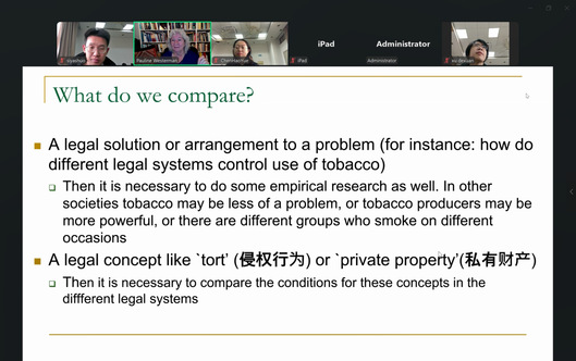 Pauline教授特别强调,三者并非割裂,而是互为支撑。例如,比较研究需结合实证数据,才能理解为何同一法律概念(如“私有财产”)在不同法域中的适用条件存在差异。她还以“合同签署规则”为例,说明法律规则如何通过条件设定重构事实认知。