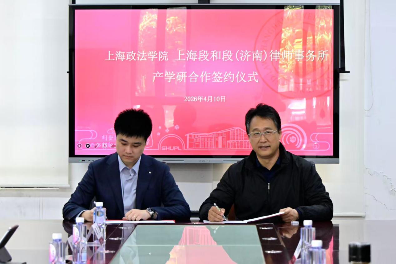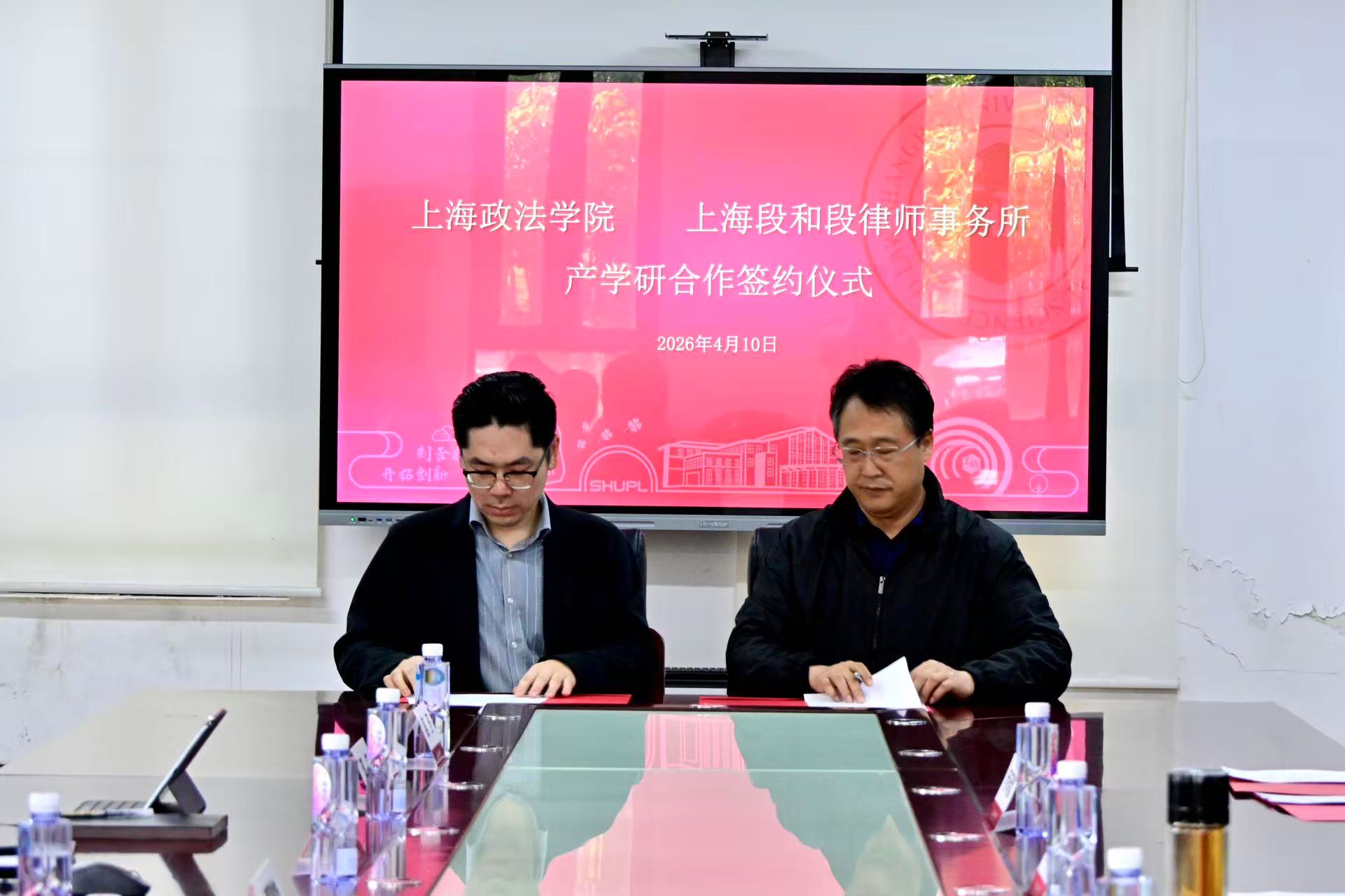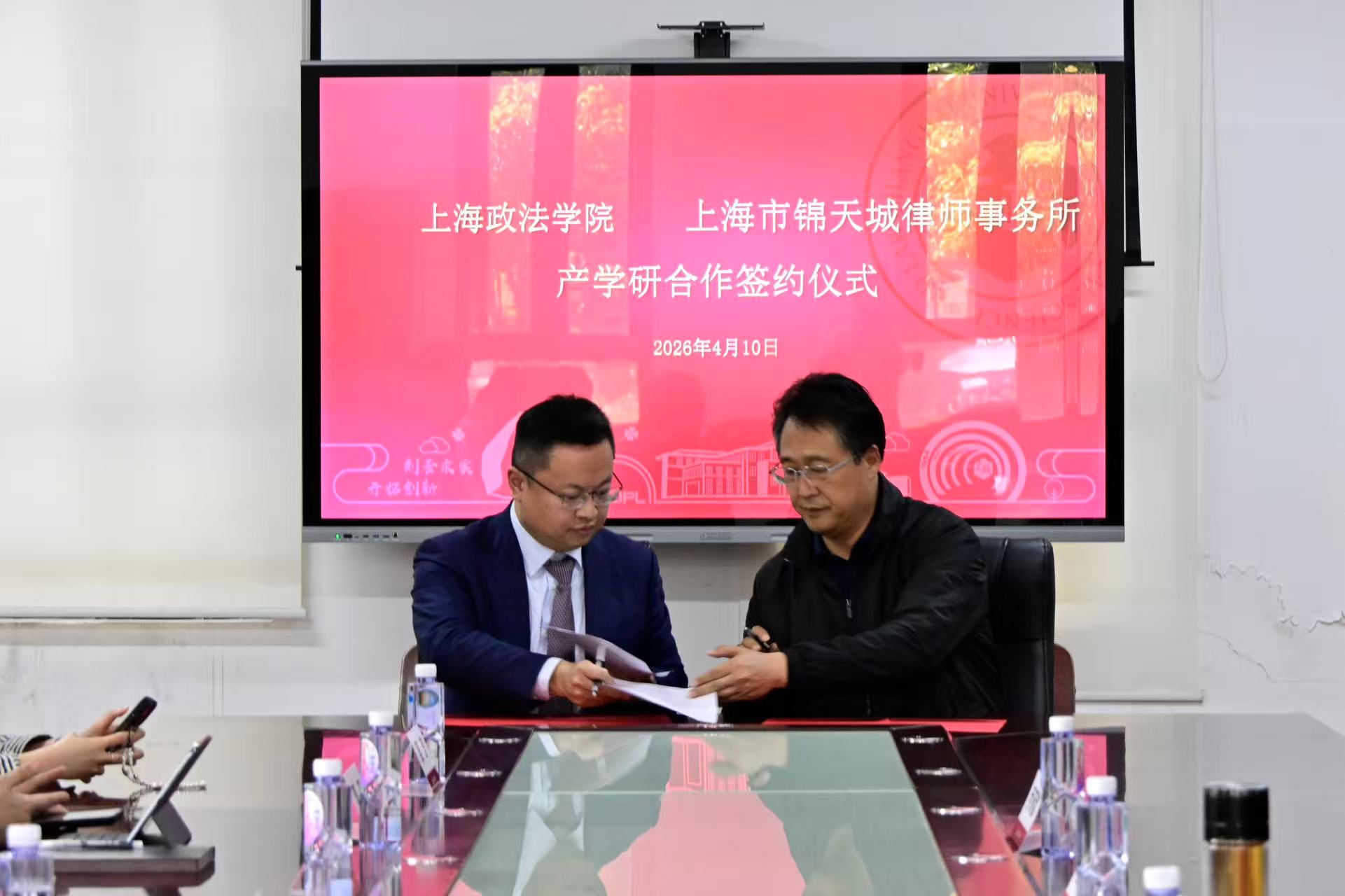 2026年4月10日,上海政法学院产学研合作签约仪式成功举行。法律学院(调解学院)院长魏治勋代表学院,与上海市锦天城律师事务所、君泽君律师事务所、上海段和段律师事务所、上海中因律师事务所、北京德和衡(上海)律师事务所、段和段(济南)律师事务所、律钻(上海)网络信息科技有限公司、共七家单位正式签署合作协议,共建“产学研合作基地”。