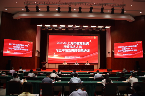 2025年7月3日至4日,2025年上海市教育系统行政执法人员“贯彻落实习近平法治思想,提升教育行政执法人员执法能力”专题培训班在上海政法学院中国—上合司法培训基地成功举办,本次培训由上海政法学院发展规划处承办。上海市教育委员会一级巡视员陈睦,上海政法学院校党委副书记、副校长高志刚等出席开班仪式。上海市教育委员会一级巡视员陈睦作动员讲话,他指出,教育执法是教育法治工作的重要组成部分,是推进依法治教、依法治校、依法办学的重要抓手;对全体培训人员提出要求,将理论学习与实践紧密结合,面对执法中的新情况、新问题,敢于担当、勇于创新。