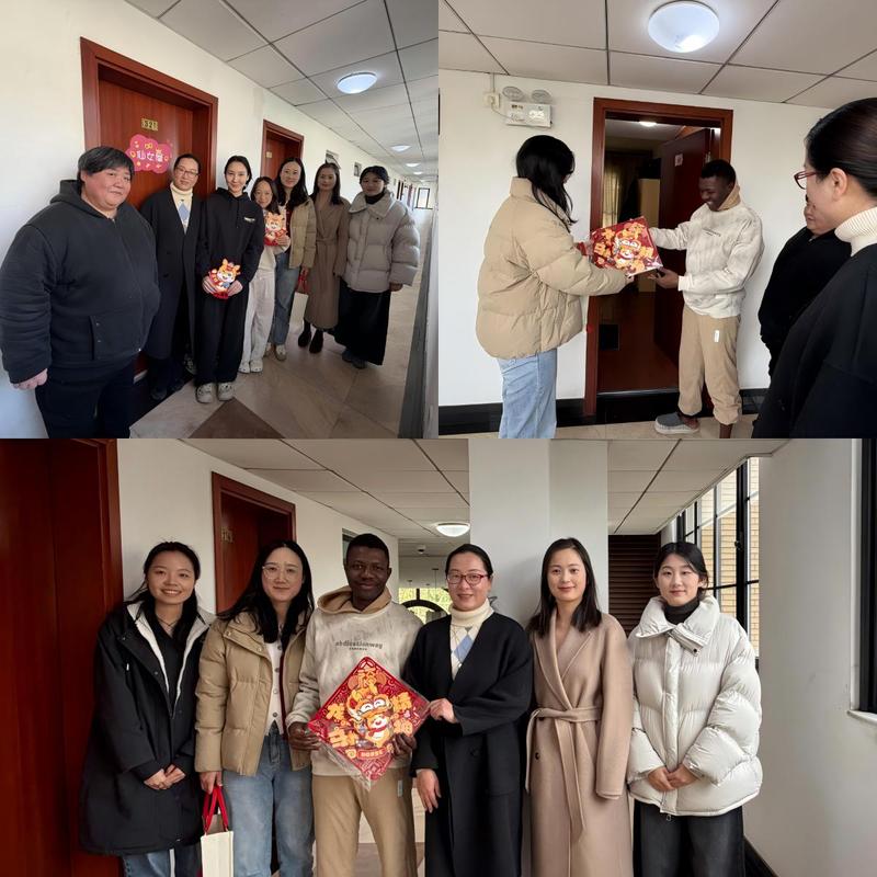 学院也格外关心假期留校的国际学生。党委副书记陈娜与辅导员老师专程前往留学生宿舍,为他们送上寓意吉祥的新年福贴与美好祝愿。老师们细心询问同学们的假期计划与生活适应情况,提醒大家注意天气变化与日常安全,度过一个充实而愉快的假期。小小的福贴承载着浓浓的温情,让身在异乡的学子感受到了来自学院的温暖与牵挂。