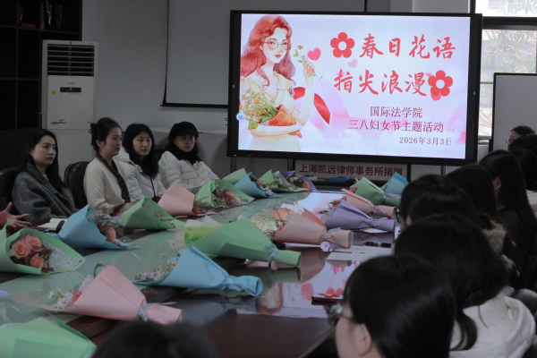 近日,在第116个“三八”国际劳动妇女节来临之际,为致敬学院每一位在教学科研、求学逐梦路上绽放光彩的女性,彰显新时代女性自尊、自信、自立、自强的时代风采,上海政法学院国际法学院分工会于明法苑B1-217会议室开展“春日话语・指尖浪漫”主题活动,学院女教职工与青年学生代表齐聚一堂,共赴这场春日之约,共度温馨节日。