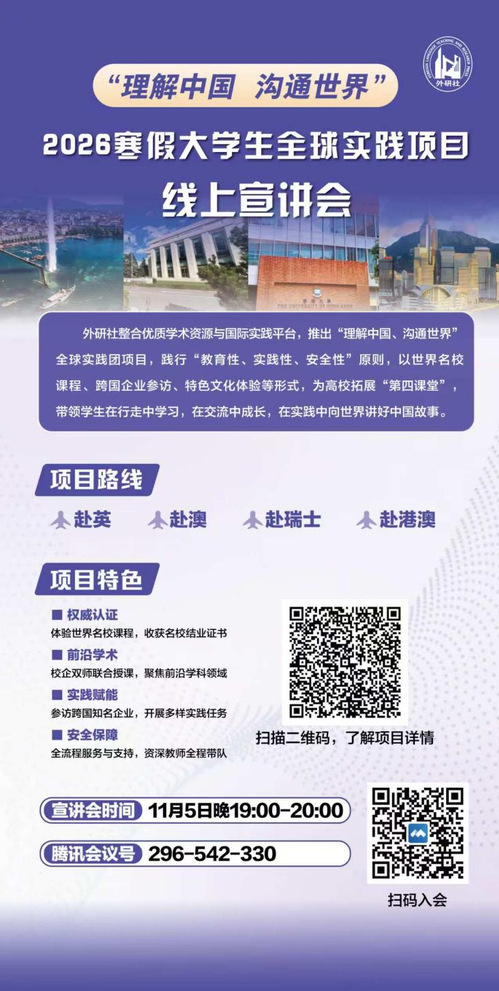 以下为2026年部分寒假项目,项目详细信息、申请材料等均见外事系统,欢迎感兴趣的同学报名参加。