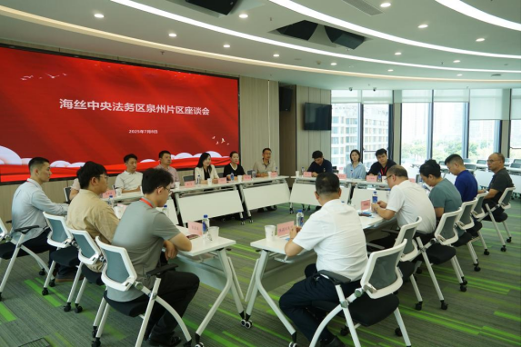 随后,调研组在泉州市丰泽区委常委、政法委书记李瑜彬陪同下,参观海丝中央法务区(泉州片区)法治服务中心(以下简称“中心”),深入了解该中心聚焦金融纠纷化解、持续提升金融纠纷一体化调处中心的运行效能。在座谈交流环节,泉州市丰泽区商务局、司法局、法院、检察院、国投集团等单位负责人分别围绕外商投资优秀经验进行了探讨和交流,并表示期待与我校进一步建立良好的合作共赢关系,共同推进涉外法治人才培养与涉外法治高地事业建设。