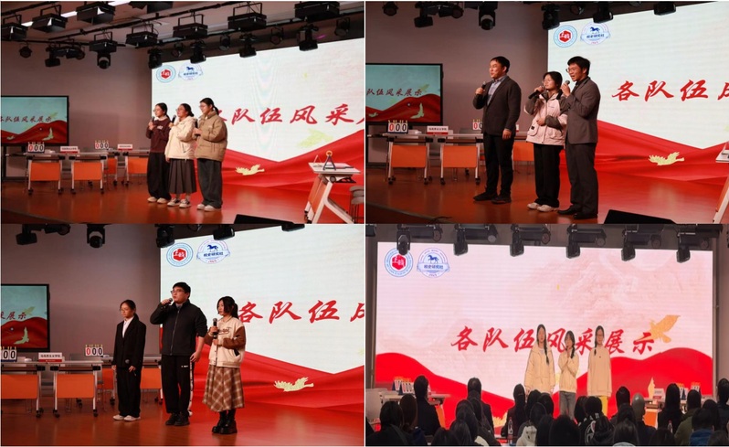 比赛在回顾建校41年发展历史的暖场视频中拉开序幕。来自马克思主义学院、政府管理学院、法律学院(调解学院)、语言文化学院(国际交流学院)的四支决赛代表队依次登台进行风采展示,他们精神饱满、口号响亮,展现出昂扬向上的精神面貌。