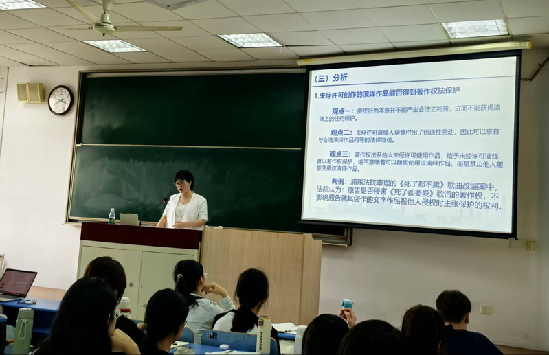 杜灵燕法官随后以“著作权纠纷的审理要点与难点分析”为题,首先宏观介绍了上海知识产权法院著作权案件受理的基本情况,通过案件数据鲜明呈现了著作权案件的主要纠纷类型。而后,杜灵燕法官从“故事核心情节的著作权保护及侵权对比方法”“未经许可创作的演绎作品的保护”“委托创作创作者行为的认定标准”“建筑物效果图的保护路径”四个板块入手,以实际司法案例的审理要点和分析思路为主线,凝练且详细地解读了著作权保护的理论基础和实务要点,拓展了在座师生对作品保护的理论认识与司法视野。