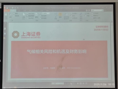 11月6日上午10:00至11:30,由经济法学院(丝绸之路律师学院)杨彤丹副教授主持,联合上海证券研究所绿色金融研究中心周绪艳讲师,在主教517A成功开展了以“气候相关风险和机遇及财务影响”为主题的ESG实务课研讨。本次实务课程围绕国内外主要气候信息披露准则、气候相关风险和机遇及财务影响等议题展开深入交流。