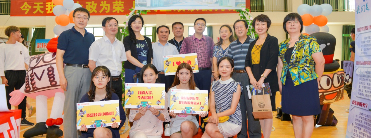 2017年的迎新工作,经济管理学院为新生们准备许多报道小惊喜,新生未到校就可参加线上活动征集标语,如“我的大学,今天启航”、“接过你的行李,我们都是经管人”、“我们的征程是星辰大海”等,许多新生与家长拿着印制的标语牌合照,纪念这个正式开启他们四年梦想起航的报道日。刘晓红校长、周银娥等校领导以及团委吉祥物“团团”也一起拿着经管学院特色迎新标语与新生们合影留念。学院今年新增至13个班级,共招收了583名新生,数量规模创历史新高。
