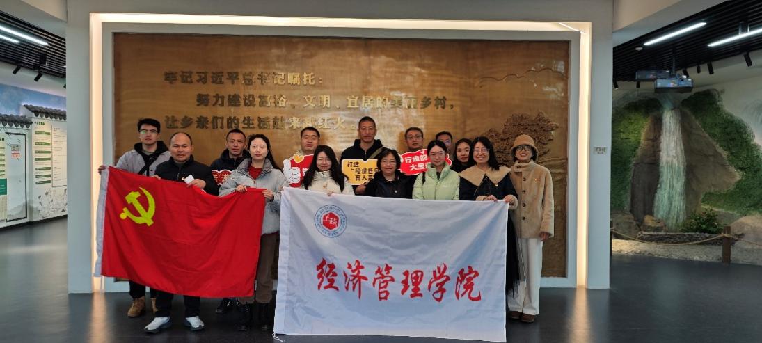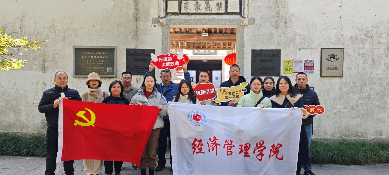 为深入学习贯彻党的二十届四中全会精神,把思政教育“小课堂”与社会“大课堂”有效融合,强化党员党性修养与使命担当,11月18日,经济管理学院党委组织师生党员代表赴浙江省余姚市梁弄镇横坎头村开展“行走的大思政课”主题活动,通过实地走访参观、微党课学习等多种形式,将学校与社会、教师与学生、课内与课外联动,进一步提高思政教育和党员教育的亲和力和针对性。经济管理学院党委委员、工会主席黄慧,教工经济学党支部书记马忠新、师生党员参加。
