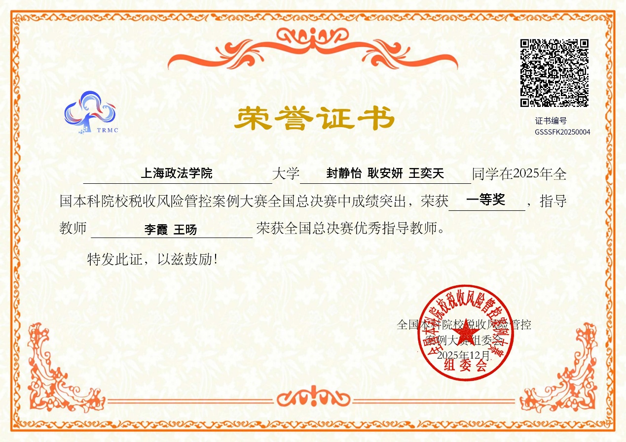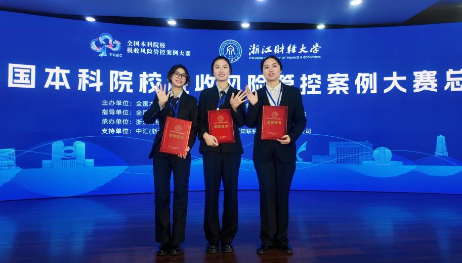 近日,由全国本科院校税收风险管控案例大赛组委会主办,浙江财经大学承办的2025年全国本科院校税收风险管控案例大赛总决赛在杭州圆满落幕。本届大赛共吸引全国434所高校的4340支队伍,逾1.3万名选手参赛,提交作品3831份,最终180支队伍晋级全国总决赛。由经济管理学院李霞、王旸两位教师指导,封静怡、耿安妍、王奕天三位同学组成的代表队,从众多优秀团队中脱颖而出,一举夺得全国一等奖,实现我校在该项国家级高水平学科竞赛中的历史性突破。