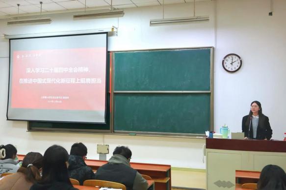 为加强学员对入党誓词的了解,学习贯彻党的二十届四中全会精神,促进学员理论学习,端正学员入党动机,加强党性修养,12月30日下午,上海政法学院党委党校2025年第9期入党积极分子培训班在A8-101开展第二次授课。本次党课分别由上政第27学生党支部书记余佳瑞、上政第28学生党支部书记荣泽华讲授。