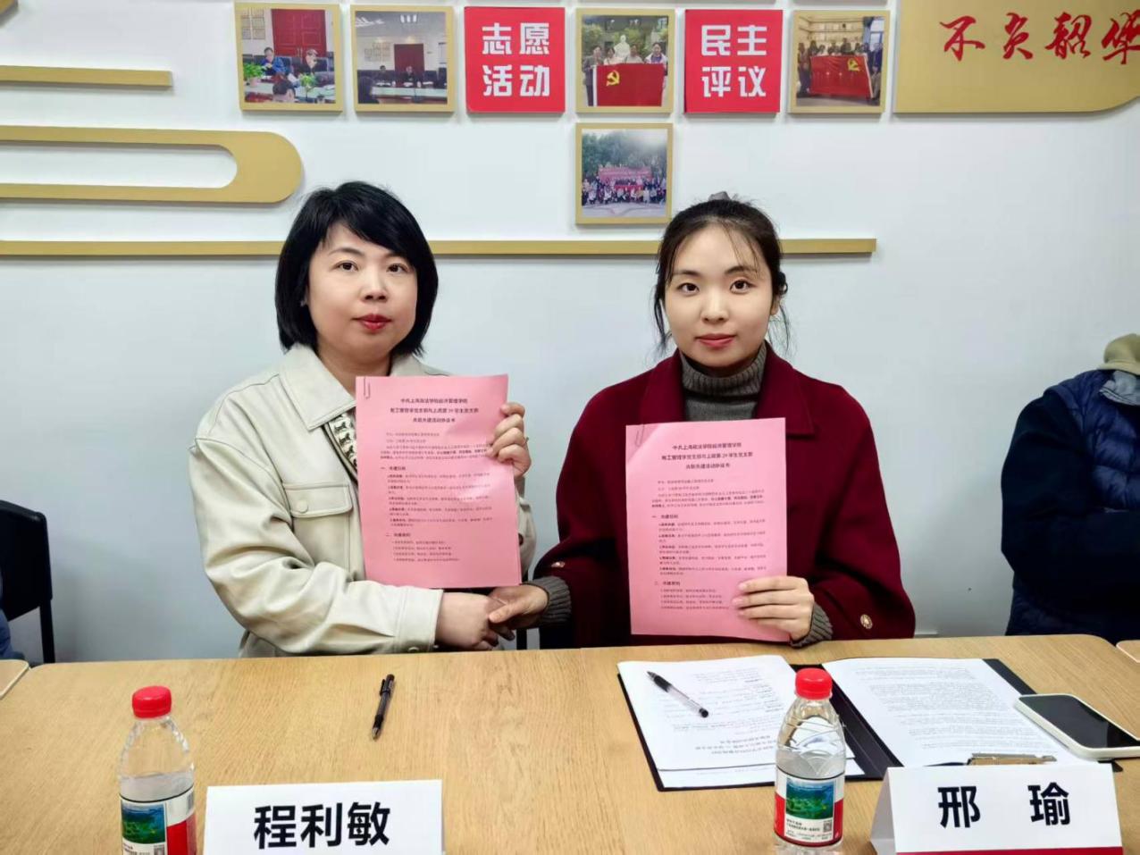 为深入学习贯彻习近平新时代中国特色社会主义思想和党的二十届四中全会精神,落实新时代高校党建工作要求,推动党建引领、师生联动、优势互补、协同育人,进一步强化基层党组织建设,助力学生全面发展与学院人才培养工作提质增效。3月6日,上海政法学院经济管理学院教工管理学党支部与上政第29学生党支部共联共建签约活动在E10-201顺利举行。经济管理学院党委委员黄慧,审计教研室主任汪立元,教工管理学党支部书记程利敏,上政第29学生党支部书记邢瑜,上政第29学生党支部党员代表和入党积极分子共同参与本次活动,活动由程利敏、邢瑜联合主持。