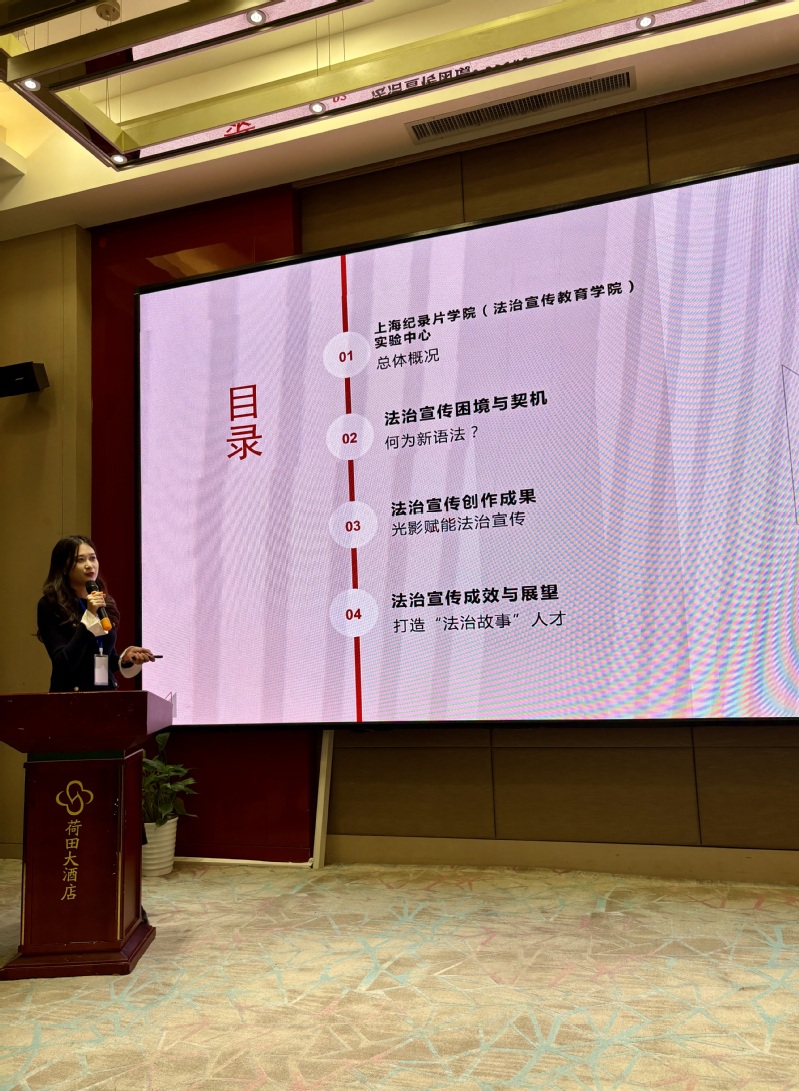 演讲中,我校教师立足法治宣传教育与纪录片教学深度融合的创新实践,系统阐述了“田野课堂”教学模式的核心理念与实施路径。该模式打破传统课堂壁垒,将教学场景延伸至法治实践一线,引导学生深入基层司法场景、法治宣传现场开展纪实创作,在真实情境中锤炼纪录片拍摄、叙事与传播能力,同时强化法治素养与社会责任感。本次发言也展示了学院在课程体系构建、实践平台搭建、产学研协同等方面的探索成果,详细介绍了如何通过项目化教学、跨学科协作等方式,让学生在法治题材纪录片创作中掌握“用影像讲好法治故事”的新方法,形成兼具思想性、艺术性与传播力的教学成果。