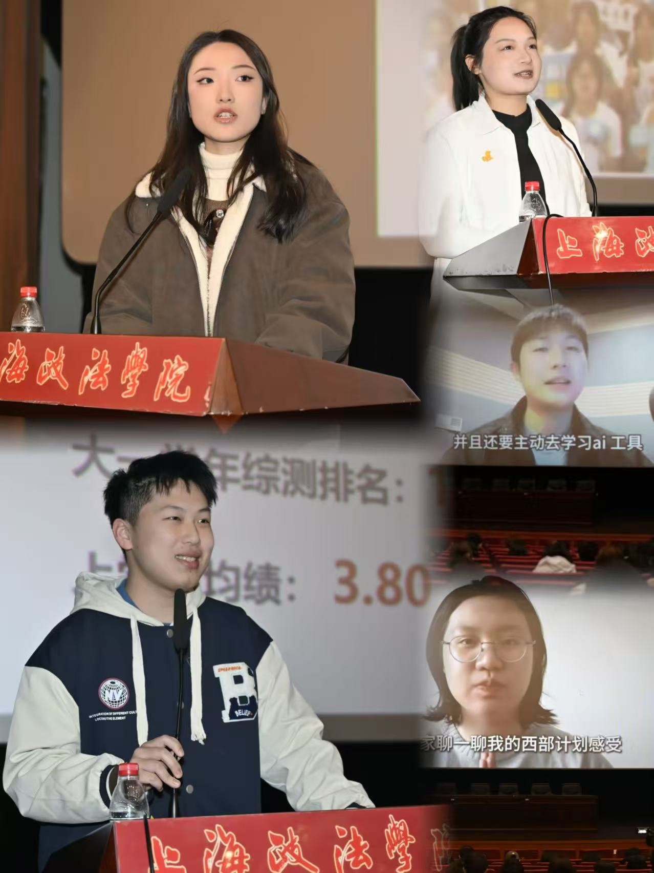 会议在校友寄语中拉开帷幕。 任职于上海教育电视台的2020届毕业生高飞宇结合行业变革,提醒大家“拥抱变化”“扎根现场”“内容为王”,为同学们应对传媒行业转型提供职业路径参考;正在新疆且末县参加西部计划的2025届毕业生乔海雯,用边疆经历讲述自身职业方向的选择与坚守;入职中国银行的2025届毕业生冯宇馨则从网申笔面试细节出发,建议同学们扎实专业技能,提升职场竞争力。校友们的分享以自身职业发展轨迹,为在校生提供了从校园到职场的清晰标杆与前行动力。