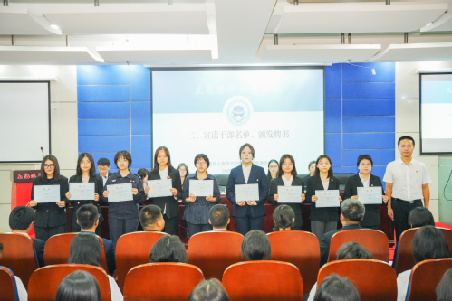 会议在庄严的中国共产主义青年团团歌中开幕。陈思远宣读了新一届团学干部名单,随后由刘震涛为获聘干部颁发聘书。