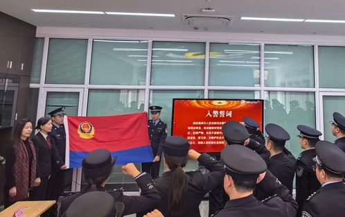 交流研讨环节,双方围绕“我心中的人民警察”主题展开深入交流。学生代表结合学习经历与职业憧憬踊跃发言,司法警察代表结合一线工作经验,分享了从警感悟与职业坚守,现场氛围热烈融洽。研讨结束后,全体司法警察面向警旗庄严宣誓,这既是司法警察对初心使命的重申,也是对青年学子投身法治事业的殷切感召。