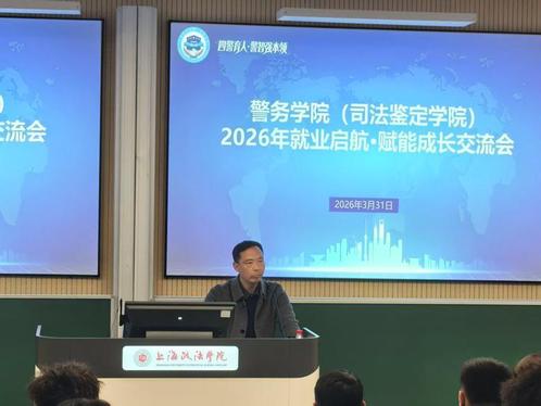 2026年3月31日,警务学院(司法鉴定学院)2026年就业启航·赋能成长交流会顺利举办。学院党总支书记杜雪晶、院长蔡一军、副院长刘崇亮、党总支副书记汪雪苑出席活动,我校博士匡亚萱、硕士杨莫轩作经验分享,大三全体学生参加活动。
