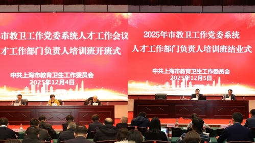 12月4日至5日,为学习贯彻党的二十届四中全会精神及全国教育大会、上海市教育大会精神,2025年市教卫工作党委系统人才工作会议暨人才工作部门负责人培训班在我校顺利举办。市卫生健康委、申康医院发展中心、各高校、市管医院等单位的人才工作分管领导和人才工作部门负责人170余人参会。