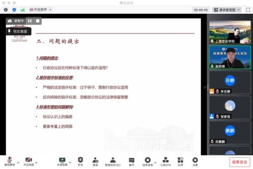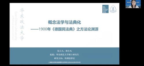 5月20日上午8点30分,“上海政法学院首届青年法学博士论坛”在“云端”成功召开。本届论坛由上海政法学院科研处、人事处、学科办主办,以“法治中国建设中的热点问题”为主题,旨在为年轻学者搭建学术交流平台、丰富人才引进模式、研究讨论新时代法治建设中的相关问题。本届论坛共计收到来自国内外34所知名高校100余位青年学者的报名信息,61位法学博士在本届论坛上进行发言,此外还有50多位法律界人士参与了本次论坛。