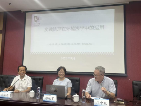 2025年9月29日下午,上海政法学院“名家讲坛”第238讲在汇知楼107成功举行。本次讲座特邀上海交通大学凯原法学院郭延军教授,以“实践法理在环境法学中的运用”为题,为我校师生带来一场兼具理论深度与实践意义的学术报告。讲座由上海政法学院博士生导师门中敬教授主持,上海政法学院博士生导师关保英教授致辞。
