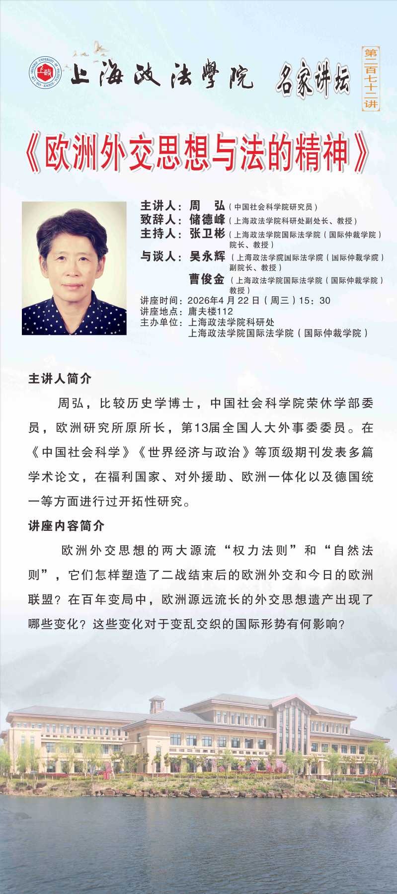 【名家讲坛第272讲预告】中国社会科学院研究员周弘:欧洲外交思想与法的精神