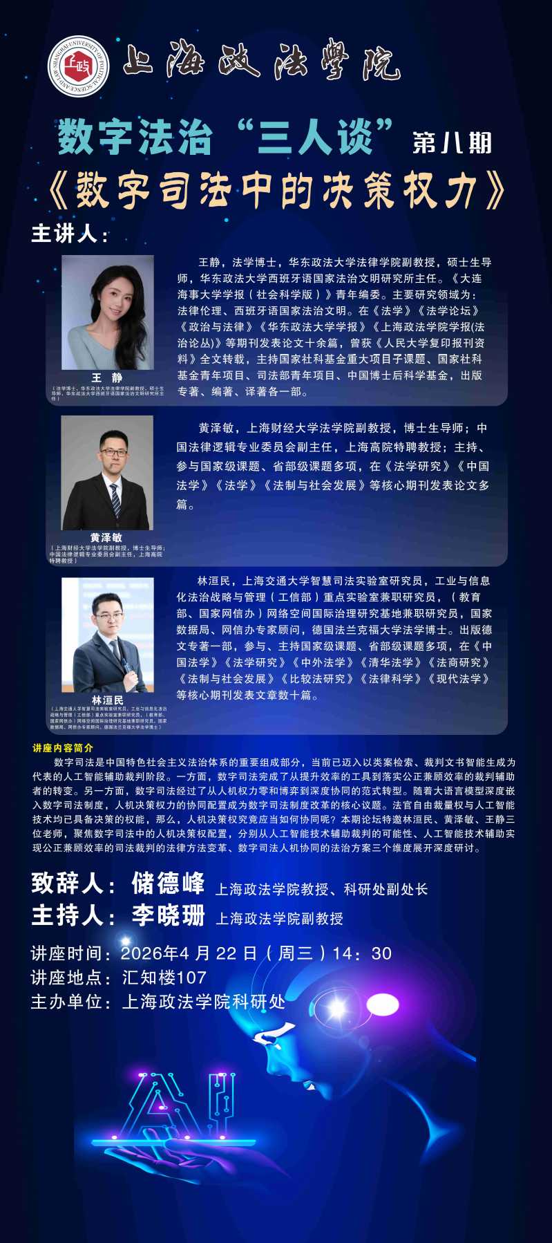 【数字法治“三人谈”第八期预告】王静、黄泽敏、林洹民:数字司法中的决策权力