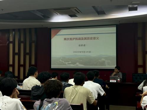 为纪念中国人民抗日战争暨世界反法西斯战争胜利80周年,弘扬伟大抗战精神,指导新生更好适应大学学习生活。马克思主义学院于9月17日13:50在汇知楼开展了“两次淞沪会战及其历史意义”专题讲座暨新生学业指导活动,活动由马克思主义学院党总支副书记徐世甫教授主讲,马克思主义学院辅导员杜浩主持,马克思主义学院全体新生及部分老生参加讲座。