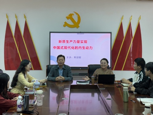 2025年10月30日上午,上海政法学院马克思主义学院特邀上海电力大学焦娅敏教授,于主教410C开展“新质生产力是实现中国式现代化的内生动力”专题讲座,人工智能法学院党总支书记、马克思主义学院教授徐俊峰主持,马克思主义理论专业研究生参与研讨。