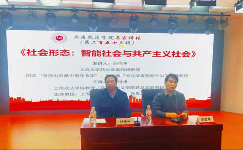 2025年11月18日下午,上海政法学院名家讲坛第二百五十三讲在承德楼 顺利举办。国家“有突出贡献中青年专家”、教育部“长江学者奖励计划”特聘教授、上海大学伟长学者孙伟平教授以“社会形态:智能社会与共产主义社会”为主题,为在场师生带来了一场极具深刻性、前瞻性的学术演讲。讲座由上海政法学院科研处与马克思主义学院联合主办,马克思主义学院党总支副书记徐世甫教授担任主持人,全校近200名教师、研究生及本科生参加。