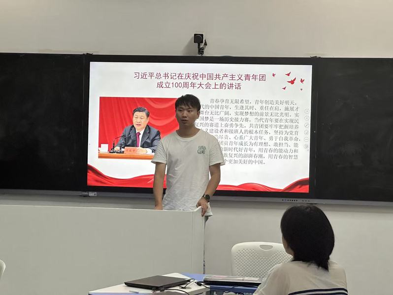 2025年9月25日,冯皓杰在主教学楼102B进行了第三次党章学习授课。本次授课以“不负青春韶华,书写奋斗人生”为主题,以习近平主席在庆祝中国共产主义青年团成立100周年大会上的讲话为引,提出青年一代的成长成才对于我国发展的重要性,引导学员践行习近平主席关于成长成才的重要思想。
