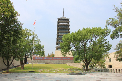 长江之畔,国旗飘扬,警世钟矗立,建筑庄重而威严。显示屏上的“铭记历史、缅怀先烈、珍爱和平、开创未来”的十六个大字,将师生们带入到了对抗战历史的追忆之中。