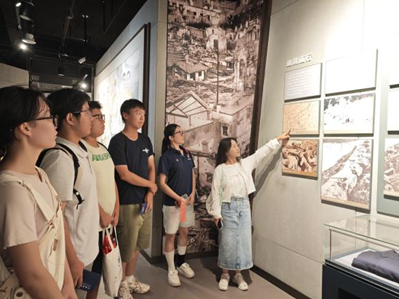 家住在宝山区的大一新生杨芷彤经常参观淞沪馆,她主动为同学们介绍道,淞沪抗战纪念馆是全国唯一一座全面反映1932年“一·二八”和1937年“八·一三”两次淞沪抗战以及上海人民14年抗日斗争史实的专题纪念馆。