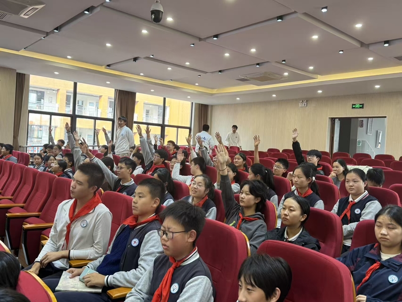宣讲结束后,由人工智能法学院兼职辅导员孙启睿为同学们答疑解惑。同学们针对人身权与财产权的相关问题积极提问,充分彰显了中学生对法律的好奇心和求知欲。孙老师结合具体法律条文和典型案例,用生动易懂的语言一一给予了细致解答。现场思维碰撞不断,掌声与笑声此起彼伏,法治的种子在热烈的互动中悄然播撒心田。