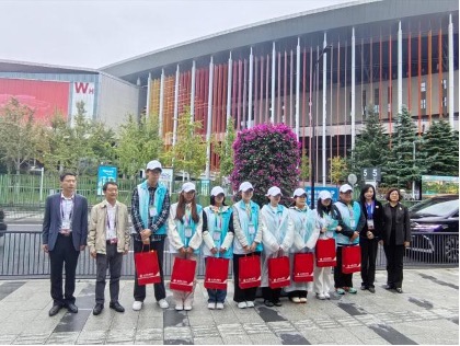 2025年11月7日,上海政法学院校党委书记葛卫华,党委副书记、校长刘晓红,党委副书记、副校长高志刚赴国家会展中心慰问馆内外一线服务的上政“小叶子”,青浦区委副书记刘琪,市公安局青浦分局党委副书记张益群,团市委挂职副书记唐志宇,及相关部门负责人与校领导共同慰问。校领导听取志愿者工作汇报,走访馆内外服务点位,赠送慰问礼包,鼓励志愿者践行志愿精神、展现专业素养,志愿者们则表示将不负期望圆满完成服务任务。