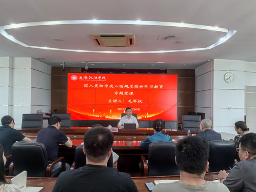 6月24日下午,校党委常委、副校长毛军权以“贯彻落实中央八项规定精神 推进作风建设常态化长效化”为题讲授专题党课。人事处(教师工作部)、计财处、信息化工作办公室等部门工作人员,经济管理学院、政府管理学院班子成员,以及第38学生党支部的党员代表参加了党课学习。