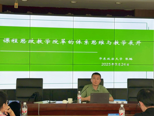 9月24日下午,华东政法大学张璐教授应邀为新进教师作“课程思政教学改革的体系思维与教学展开”专题讲座。讲座由人事处处长赵俊主持,2025年所有新进教师参加本次讲座。