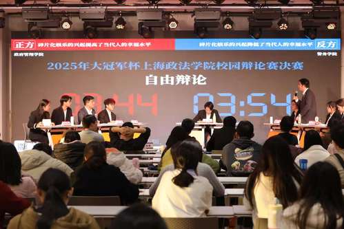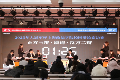 为搭建思想碰撞与学习交流的平台,进一步引导青年学子关注时代社会热点议题,培养独立思考兴趣和能力,12月9日,2025年“大冠军杯”上海政法学院校园辩论赛决赛在成德楼成功举办。历经初赛、复活赛、复赛和半决赛两个多月的激烈角逐,来自法律学院、经济法学院、政府管理学院、警务学院四支队伍脱颖而出,最终成功会师决赛舞台。决赛邀请复旦大学、华东理工大学、华东政法大学等高校辩论领域资深专家以及校内相关青年教师担任评委。