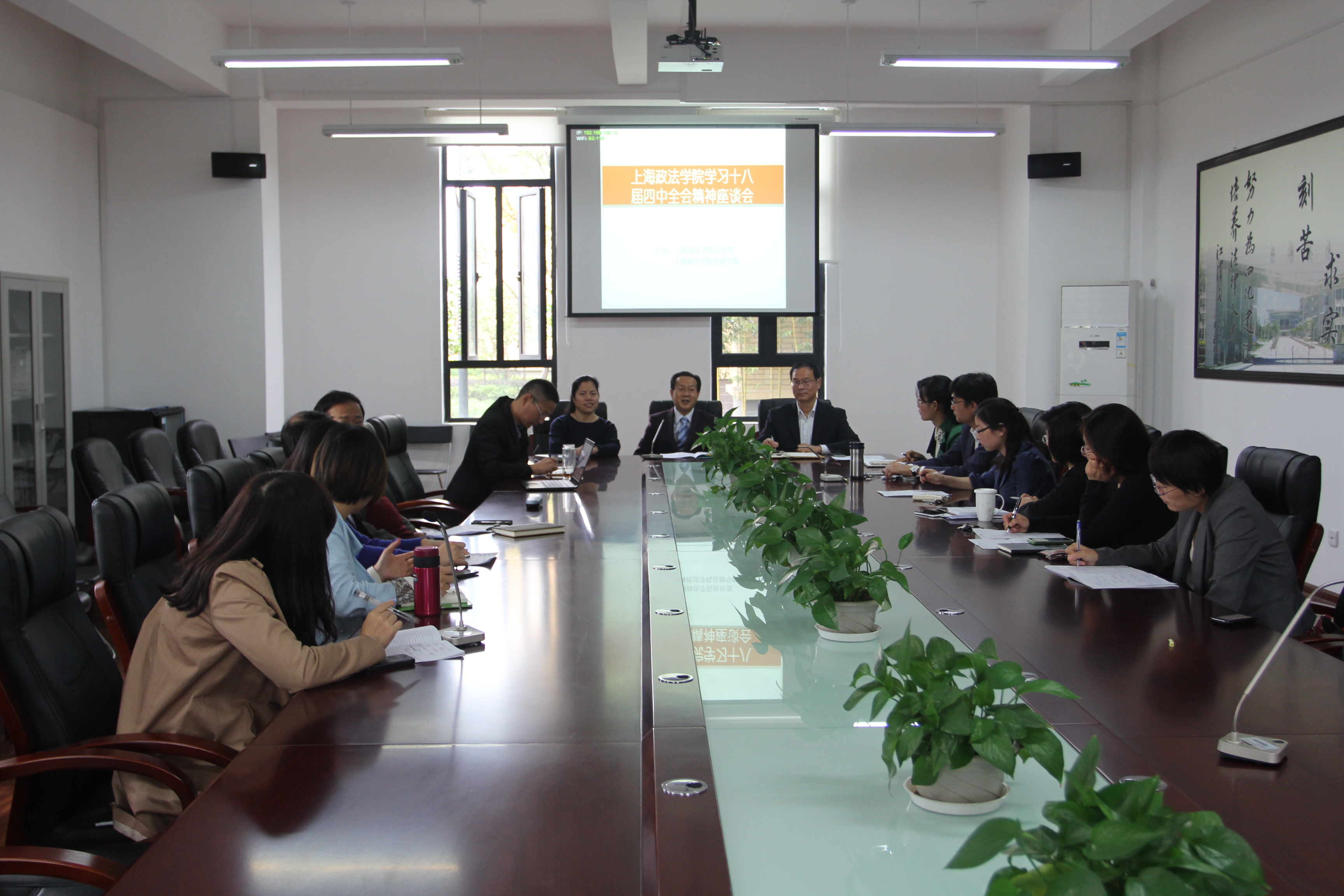 10月29日上午,党委宣传部和法律学院在B2楼210会议室联合召开学习十八届四中全会精神座谈会。座谈会由党委宣传部部长张森年教授主持,法律学院院长侯怀霞教授首先致辞并讲话,副校长关保英教授出席,法律学院、经济法学院、刑事司法学院、国际法学院部分教师参加座谈会。