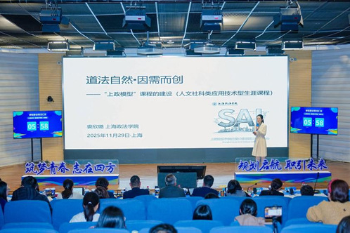 此次竞赛中,由裘欣璐老师代表参赛的我校教研团队课程《道法自然·因需而创——“上政模型”课程的建设(人文社科类应用技术型生涯课程)》内容紧密契合我校人文社科类应用技术型人才培养定位,深度锚定“涉外法治、城市智理、基层服务”三类人才培养导向,全面展示了以“系统论+智能赋能+成果导向+文化融入”为核心特征的新生涯教育体系,并重点呈现了四门核心课程的完整教案,以及正在升级算力与数据分析模块的“生涯临境”教学资源平台,突出展现了“上政模型”以真实任务为驱动、形成系统纵深,实现从课程教学到就业实践全过程衔接跃升的鲜明特色,赢得了评委的高度认可。
