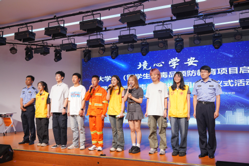 我校留学生志愿者与高境所民警同台献演了“禁毒宣传solo秀之高境三宝话禁毒”,上海政法学院禁毒志愿者协会的成员们与民警共同表演了禁毒情景剧《我的选择》。我校学子积极创新禁毒宣传形式,广泛传播禁毒戒毒理念,引导更多人民群众增强拒毒意识和法治观念。