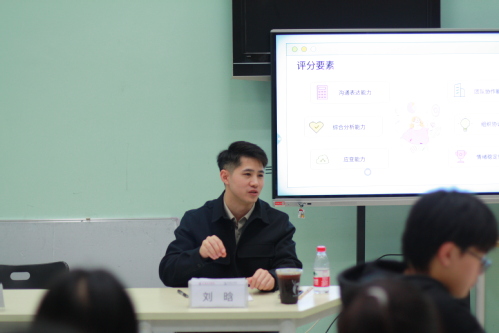 在无领导面试环节,这不仅是一场面试,实习生们在限定时间内完成了个人思考、小组讨论和最终展示。在此环节中,刘晗作为观察员,观察了每位同学的表现,对他们的讨论和汇报进行点评,分享了面试经验,让在场的每位同学感到受益匪浅。