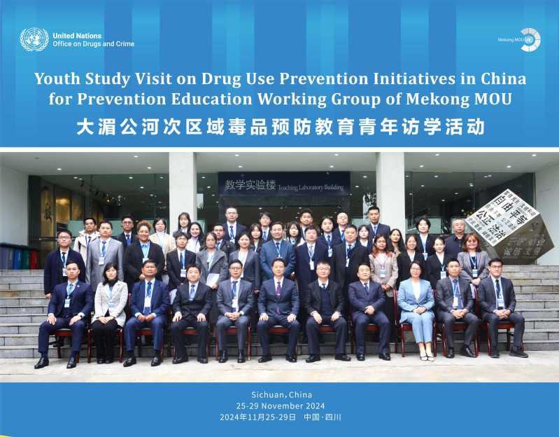 在大湄公河次区域禁毒合作谅解备忘录(MOU)机制框架下,11月25日至29日,国家禁毒委员会办公室会同联合国毒品和犯罪问题办公室在四川成都、宜宾举办大湄公河次区域毒品预防教育青年访学活动。来自中国、柬埔寨、老挝、缅甸、泰国和越南等6个国家的30余名青年大学生、毒品预防教育工作者代表及联合国毒品和犯罪问题办公室官员参加活动,中国国家禁毒委员会办公室、四川省禁毒委员会有关负责同志出席活动并致辞。我校禁毒志愿者协会成员、刑事司法学院21级本科生李佳一同学作为中国青年代表之一,参与了本次活动。